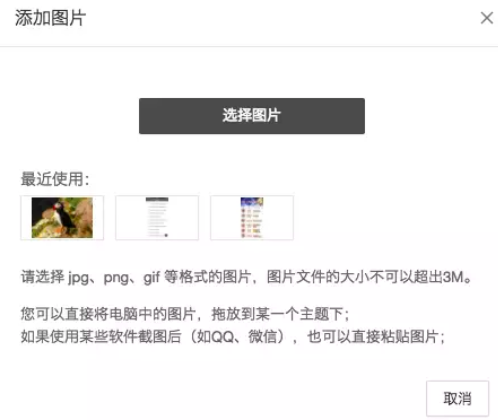 注:高级版用户才可以使用图片功能,支持 jpg、png、gif 等格式的图片,单个图片文件的大小不可以超出3M。